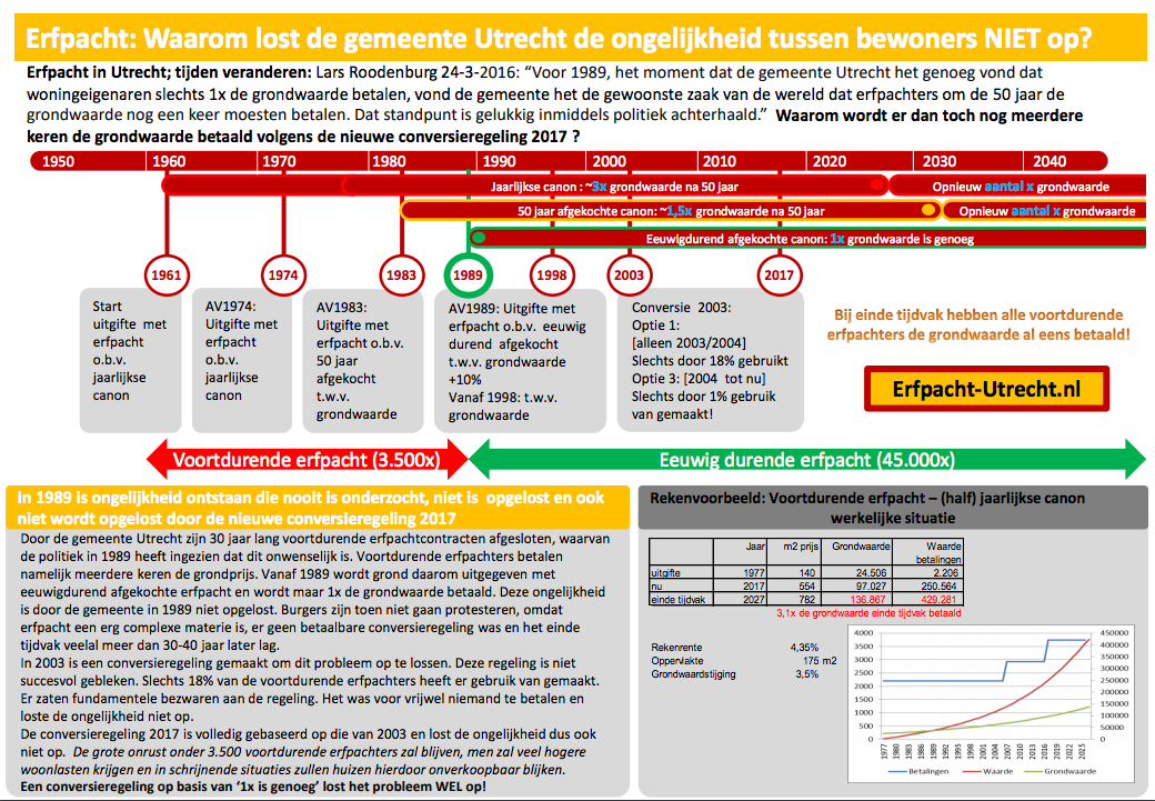 De conversieregeling 2017 laat deze groep nog een keer betalen voor de huidige grondwaarde. Dit is veel meer dan volgens het beleid sinds 1989 en vinden wij onredelijk.